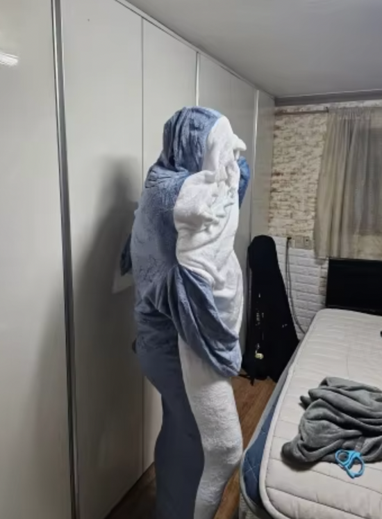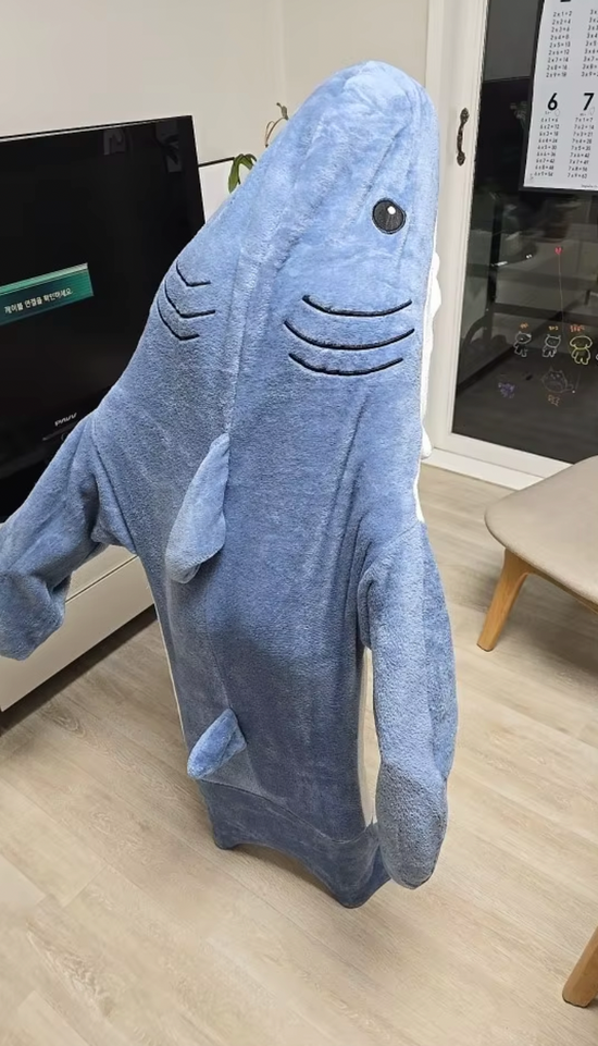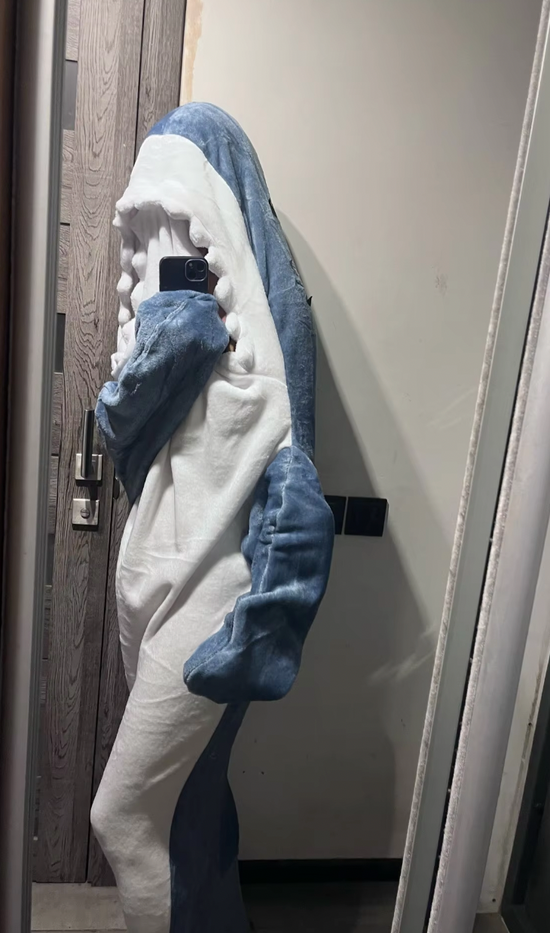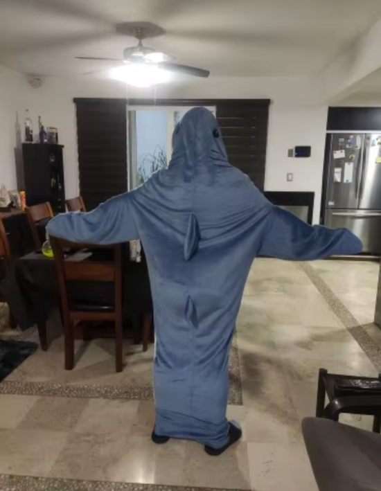 "أحب هذه البطانية على شكل سمكة قرش! إنها شديدة النعومة وابني لا يتركها."