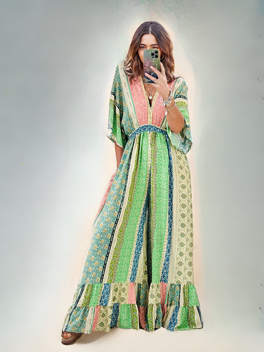 שילוב אלגנטי עם צווארון V ורגליים רחבות